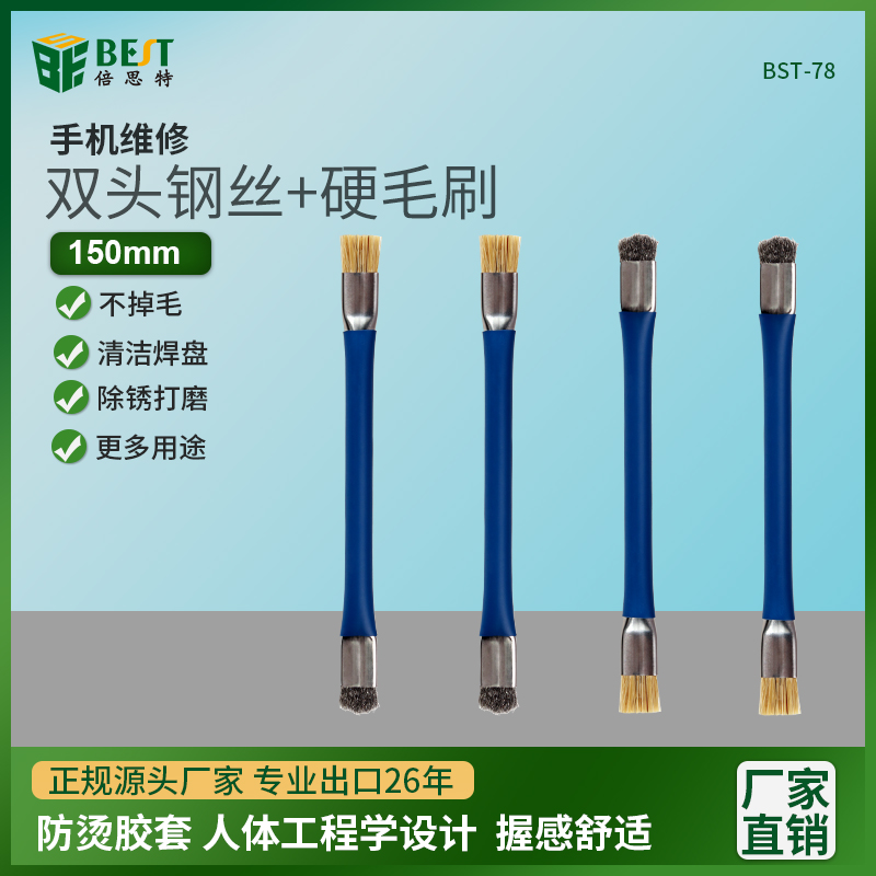 返回當(dāng)前位置: 首頁(yè) / 產(chǎn)品中心 / BST-78 雙頭鋼絲硬毛刷 手機(jī)主板IC焊盤(pán)清潔除塵不脫毛 打磨除銹鋼絲刷