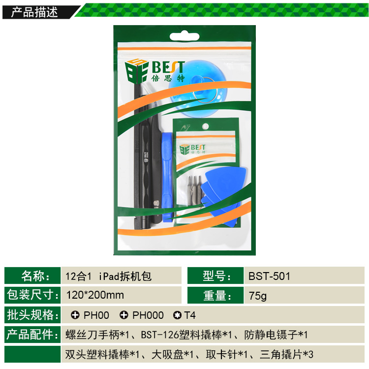 返回當(dāng)前位置: 首頁 / 產(chǎn)品中心 / BST-501 12合1 iPad拆機(jī)包 ipad維修工具套裝