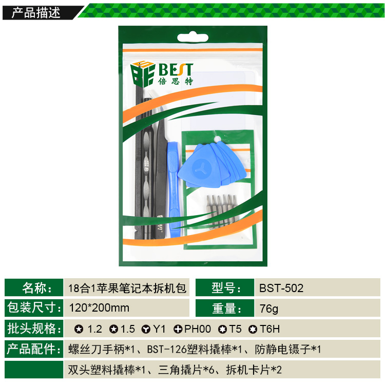 返回當(dāng)前位置: 首頁 / 產(chǎn)品中心 / BST-502 18合1 蘋果筆記本拆機(jī)包 MacBook拆機(jī)包 蘋果筆記本維修工具套裝