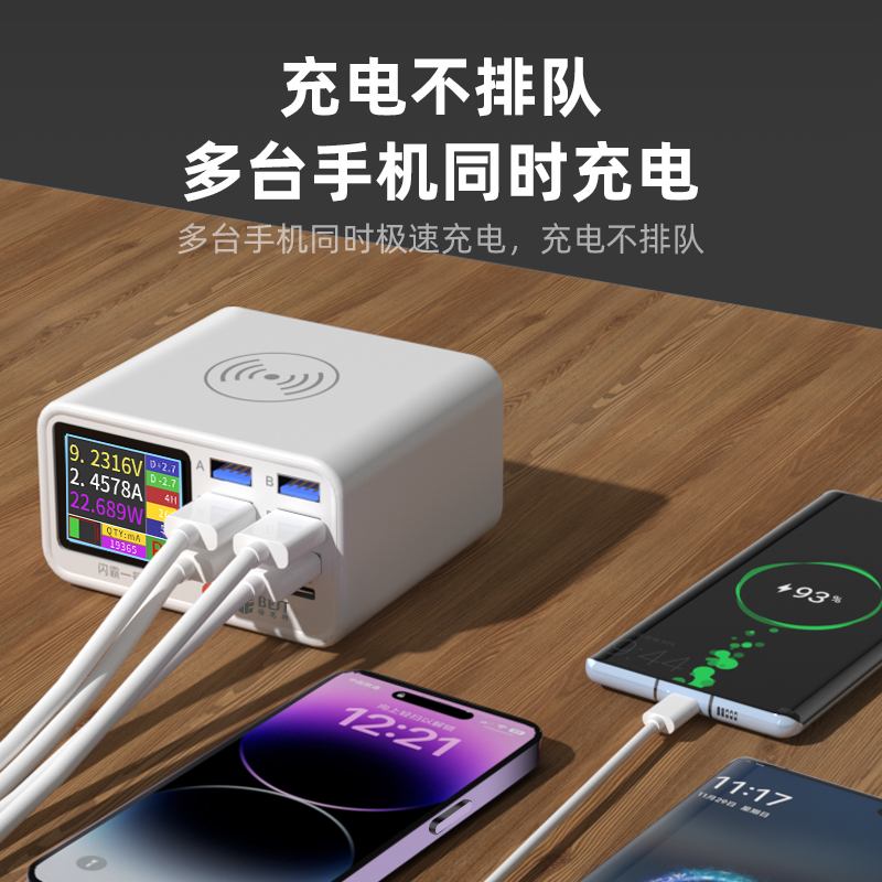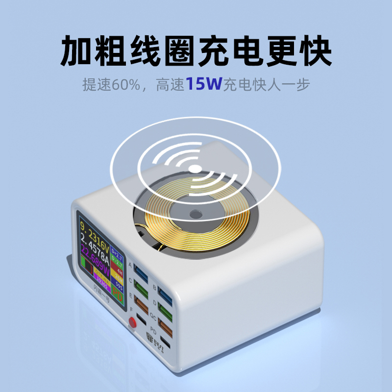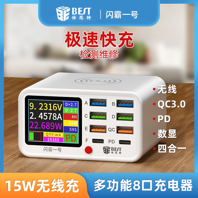 BST-S1 閃霸一號 多功能8口可視化USB充電器 極速快充 無線快充 檢測維修一體數(shù)顯充電器