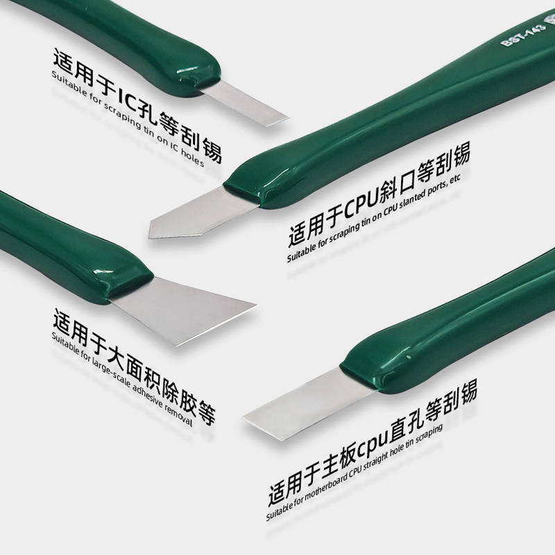 返回當(dāng)前位置: 首頁 / 產(chǎn)品中心 / BST-141/142/143/144 無磁刮錫刀 無磁膠柄除膠刮刀 超薄耐高溫防銹防腐工具撬刀 錫漿攪拌BGA撬刀