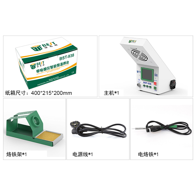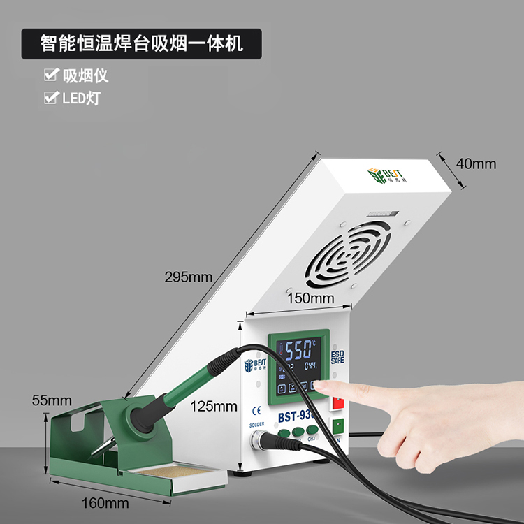 返回當前位置: 首頁 / 產(chǎn)品中心 / BST-938 帶吸煙儀數(shù)顯恒溫焊臺一體機