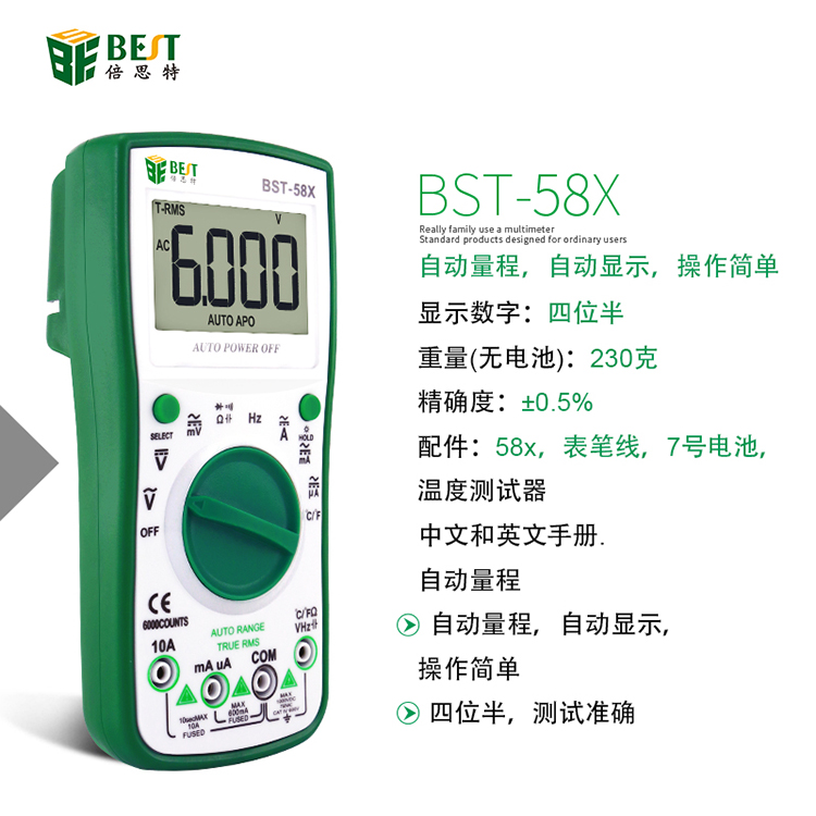 返回當(dāng)前位置: 首頁 / 產(chǎn)品中心 / BST-58X 多功能數(shù)字萬用表 自動(dòng)量程 四位半背光顯示屏 智能防燒