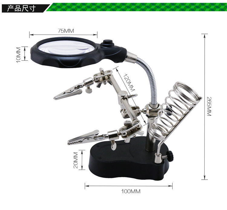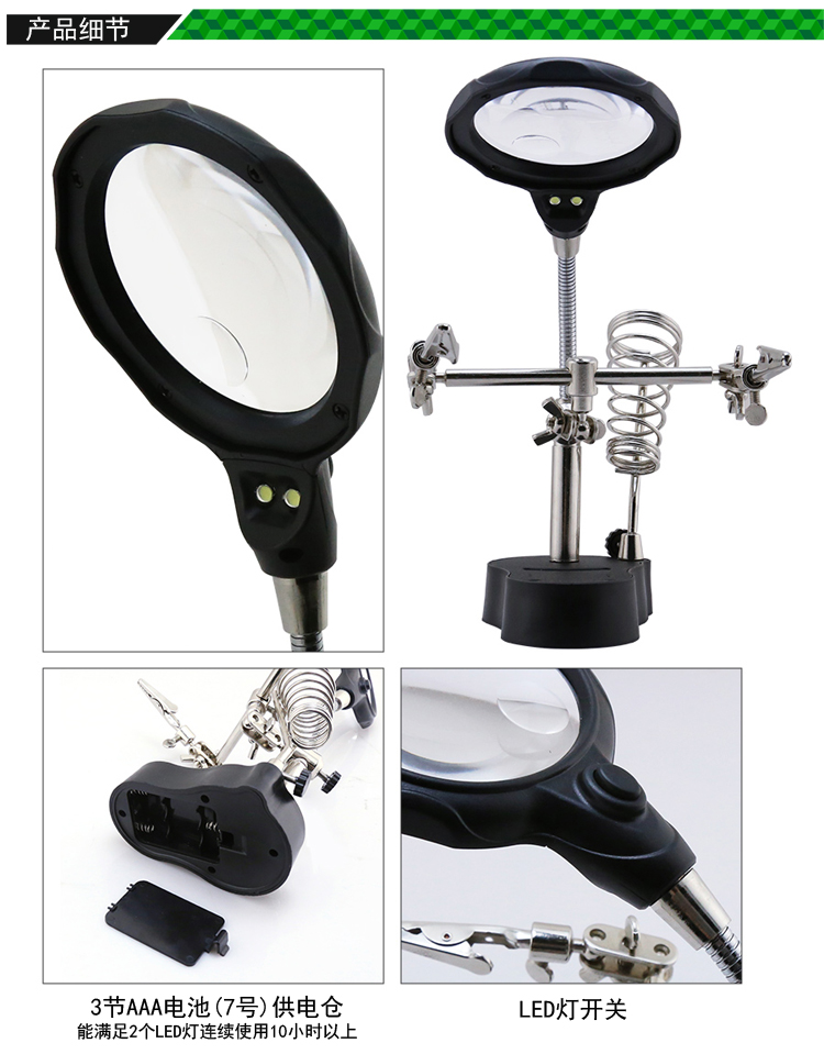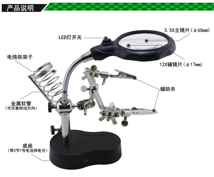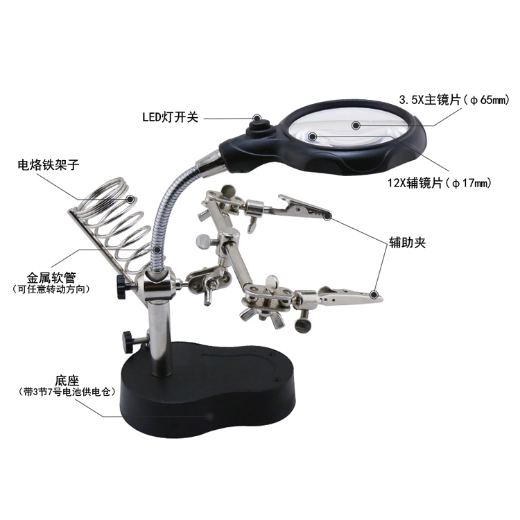 ? 產(chǎn)品名稱(chēng): 帶輔助夾臺(tái)式放大鏡