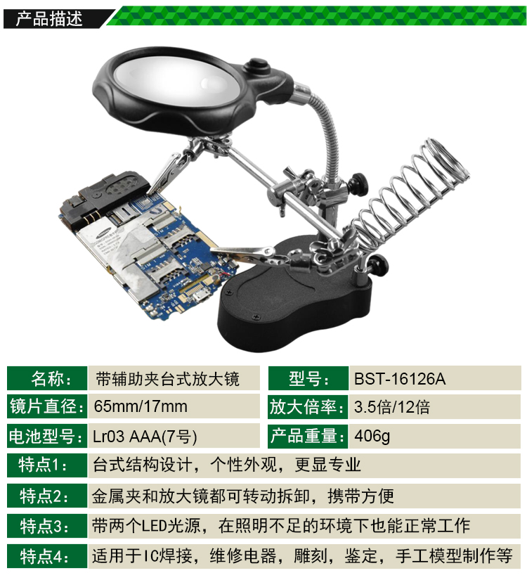 返回當(dāng)前位置: 首頁(yè) / 產(chǎn)品中心 / BST-16126A 帶輔助夾臺(tái)式放大鏡 焊接放大鏡