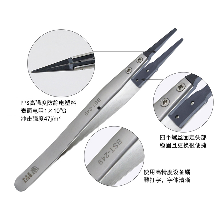 返回當前位置: 首頁 / 產(chǎn)品中心 / BST-249 防靜電鑷子可換頭 碳纖維塑料換頭鑷子
