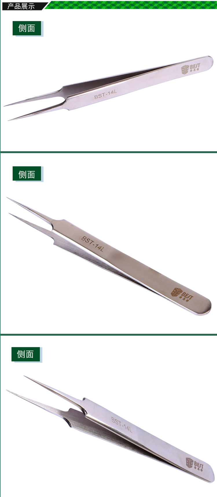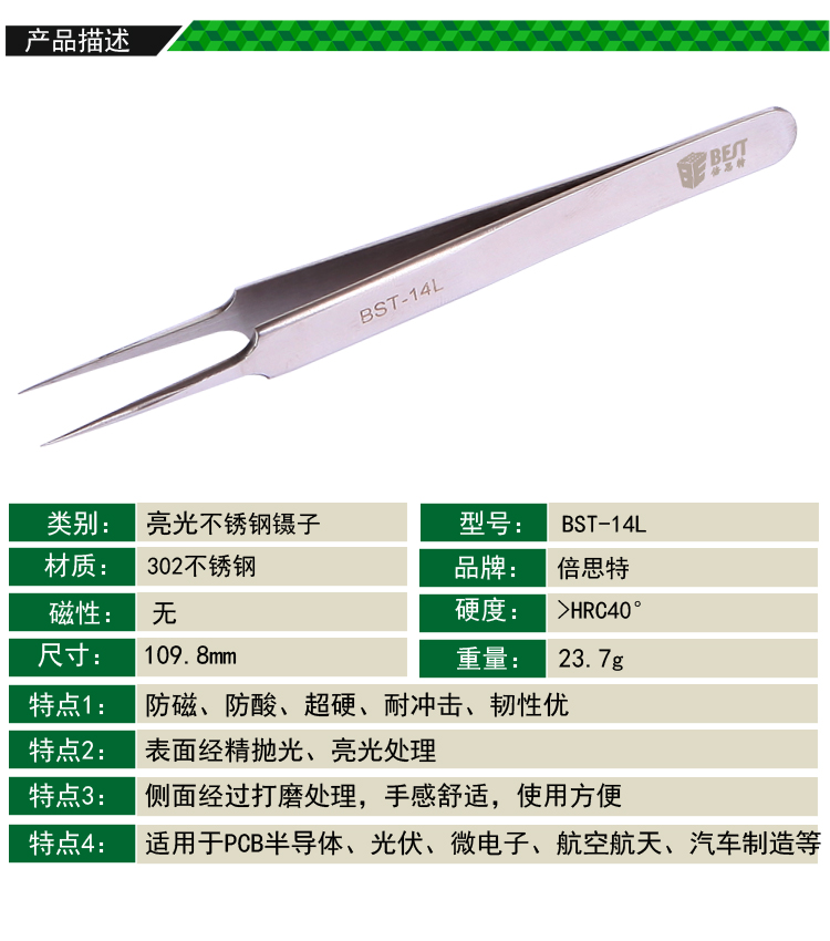? 產品名稱: 亮光鑷子 不銹鋼鑷子? 產品型號: BST-14L? 產品類別: 鑷子系列