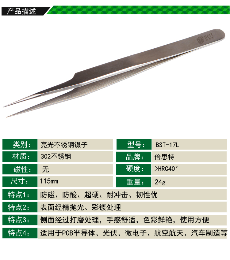 返回當(dāng)前位置: 首頁 / 產(chǎn)品中心 / BST-17L 亮光鑷子 不銹鋼鑷子