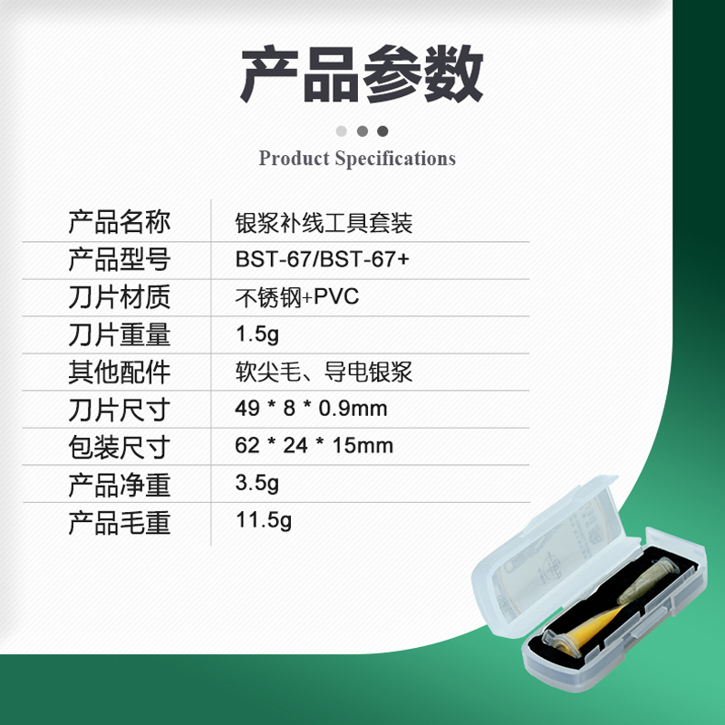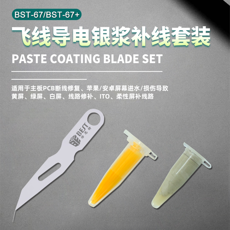 返回當(dāng)前位置: 首頁 / 產(chǎn)品中心 / BST-67+ 銀漿補(bǔ)線工具刀片套裝 手機(jī)屏幕維修進(jìn)水泛黃線路補(bǔ)修柔性屏補(bǔ)線刀 導(dǎo)電銀漿套裝
