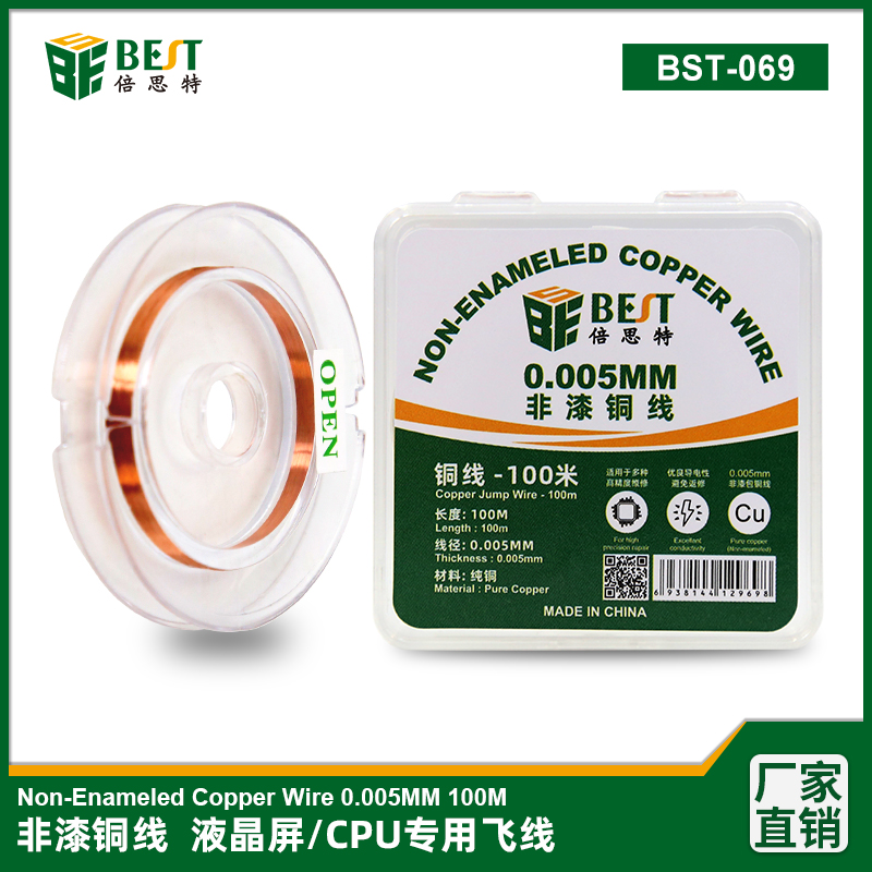 返回當(dāng)前位置: 首頁 / 產(chǎn)品中心 / BST-069 非漆銅線 0.005mm 液晶屏修復(fù)CPU內(nèi)部飛線專用 手機維修主板焊盤掉點CPU補點0.005mm非漆包銅線
