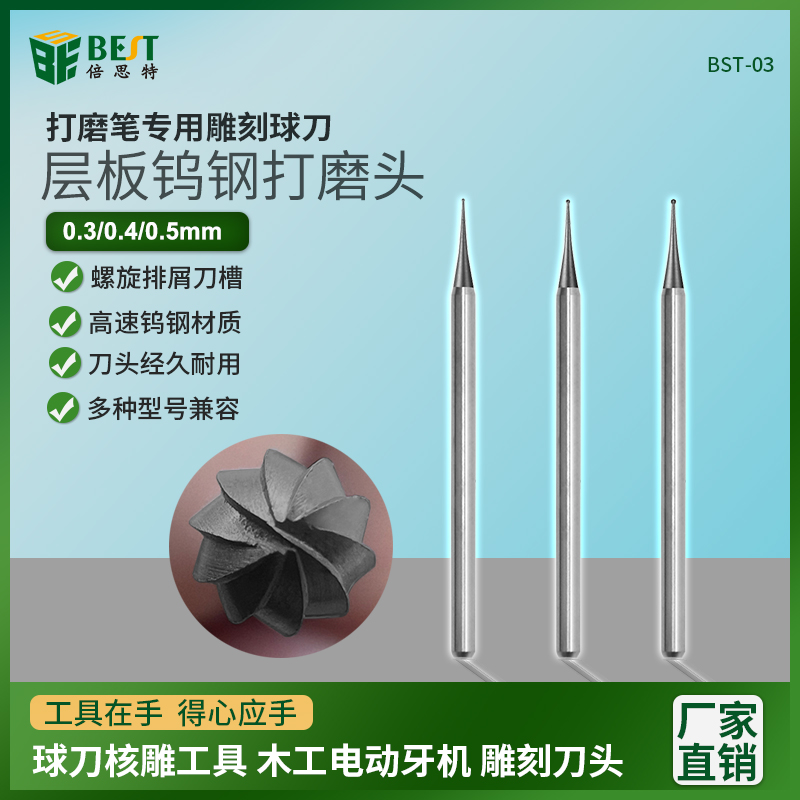 返回當(dāng)前位置: 首頁(yè) / 產(chǎn)品中心 / BST-03 層板鎢鋼打磨頭 0.3/0.4/0.5mm電磨球形針 適用于智能手機(jī)主板維修電動(dòng)打磨機(jī)球形刀頭