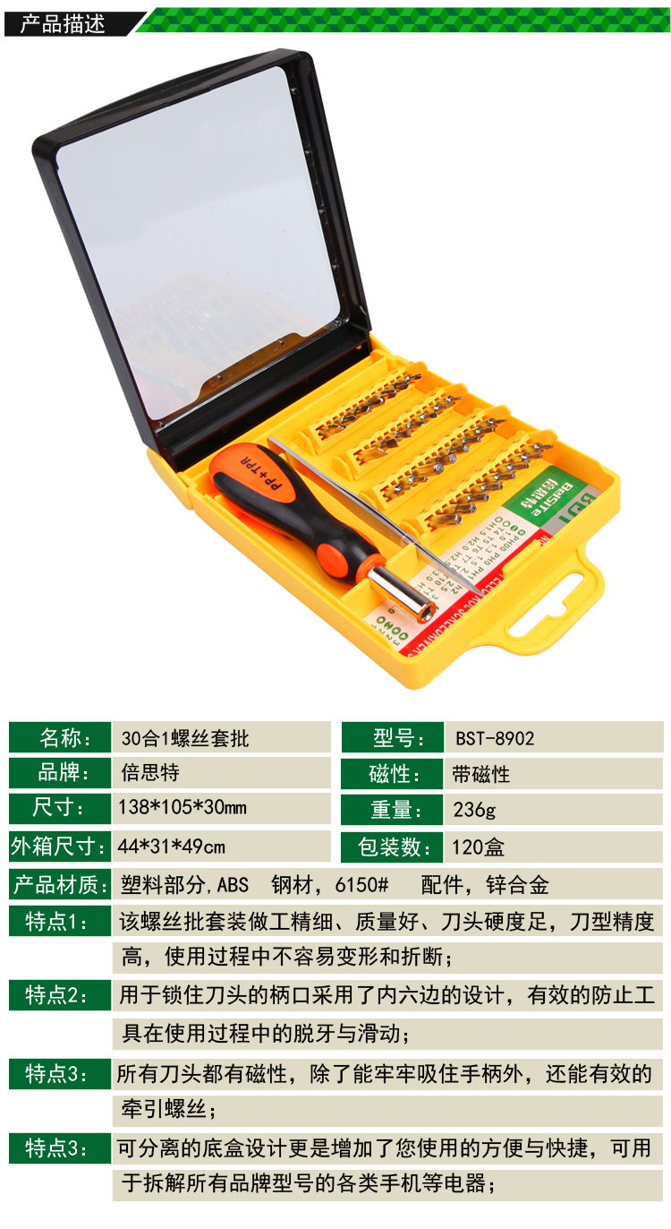 返回當(dāng)前位置: 首頁(yè) / 產(chǎn)品中心 / BST-8902 螺絲套批 螺絲刀套裝30合1 專用電腦手機(jī)電子電訊維修工具