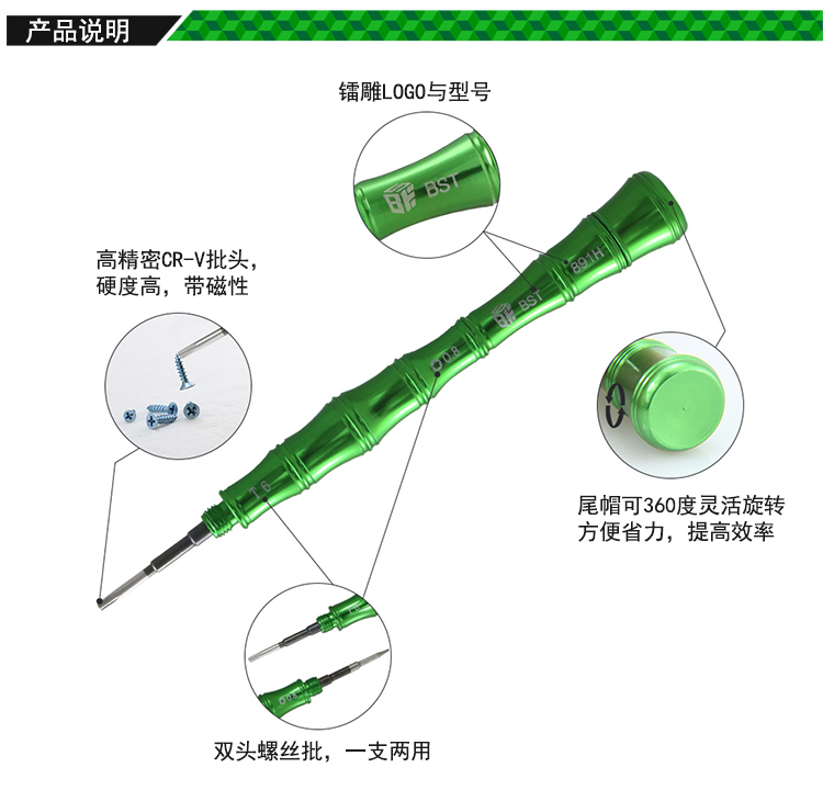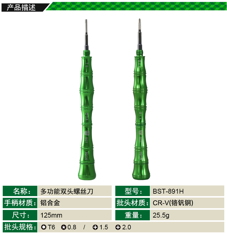 返回當(dāng)前位置: 首頁(yè) / 產(chǎn)品中心 / BST-891H 雙頭螺絲批 創(chuàng)意竹子鋁合金手柄 多功能兩用螺絲刀