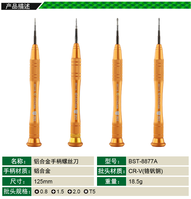 返回當前位置: 首頁 / 產(chǎn)品中心 / BST-8877A 金色鋁合金手柄精密螺絲刀 鋁批