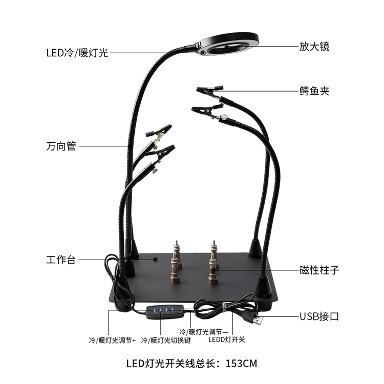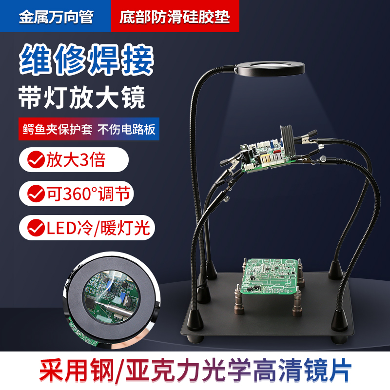 BST-168L 焊接放大鏡 臺(tái)式手機(jī)電路板維修專(zhuān)用輔助夾具 帶燈照明工作臺(tái)燈