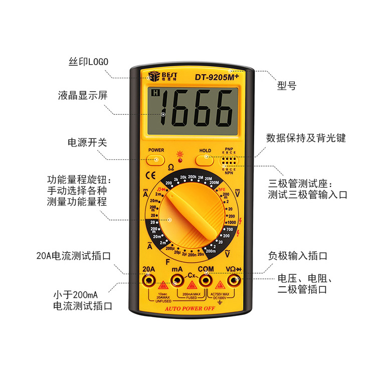 返回當(dāng)前位置: 首頁 / 產(chǎn)品中心 / BST-9205M+ 多功能數(shù)字萬用表 手動量程 三位半背光顯示屏