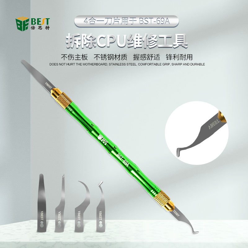 BST-69A+ 四合一除膠刀套裝 手工打磨鎢鋼刀片 CPU IC 硬盤 手機(jī)主板維修 專業(yè)除膠撬取工具