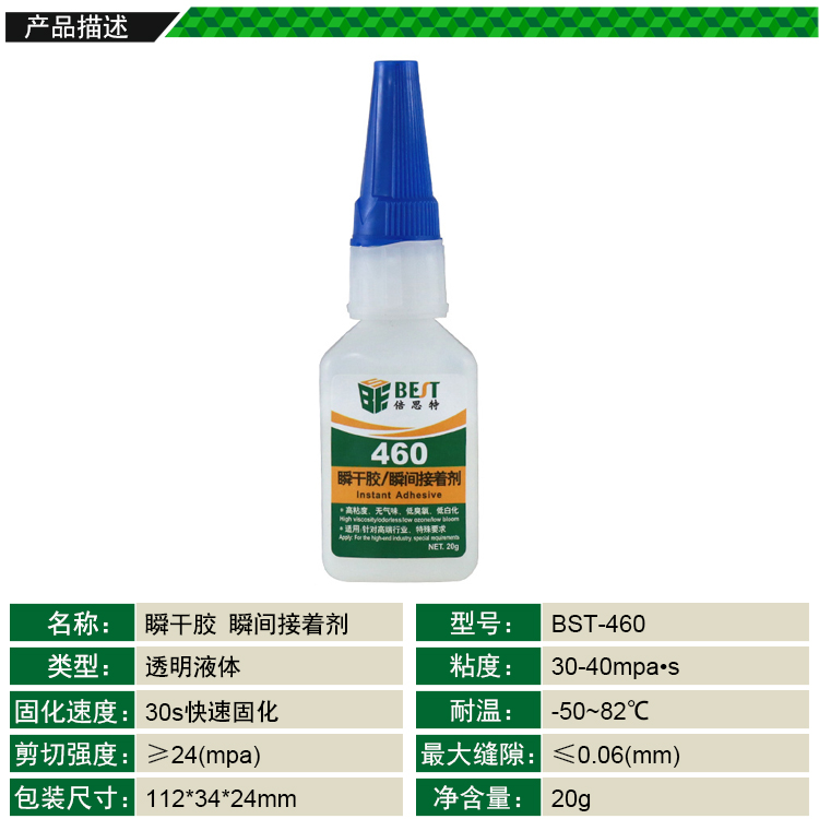 返回當前位置: 首頁 / 產(chǎn)品中心 / BST-460 瞬干膠 瞬間接著劑 瞬間膠