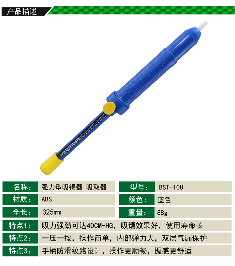 返回當(dāng)前位置: 首頁 / 產(chǎn)品中心 / BST-108 吸取器 吸錫器(藍(lán))