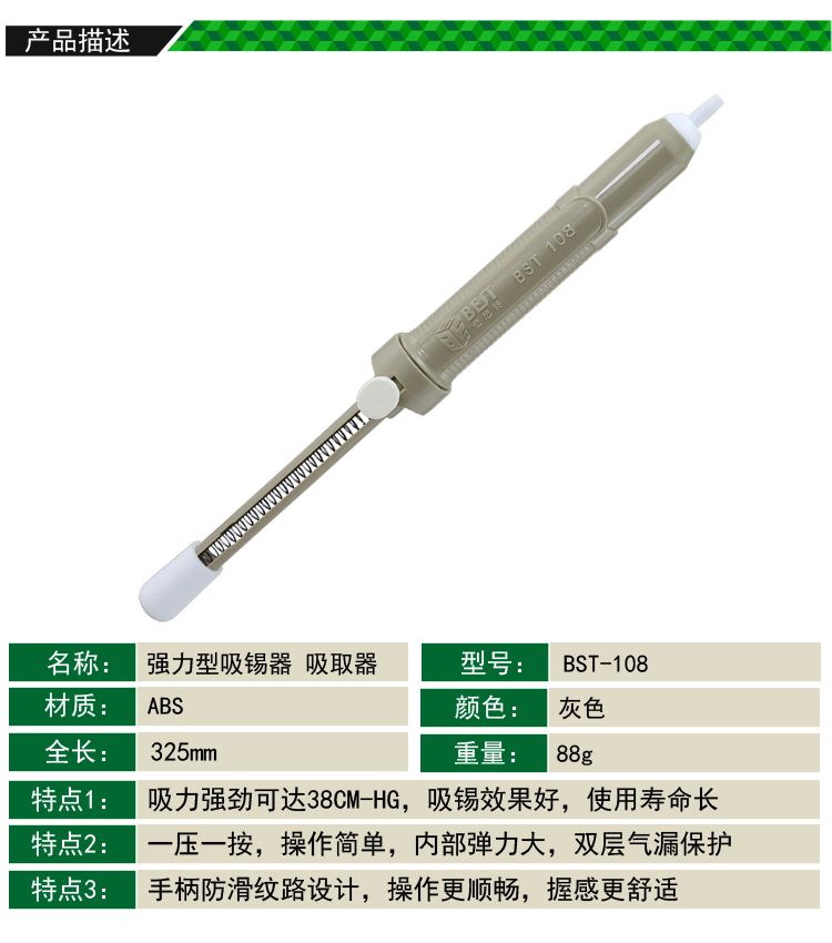返回當(dāng)前位置: 首頁 / 產(chǎn)品中心 / BST-108 吸取器 吸錫器(灰)