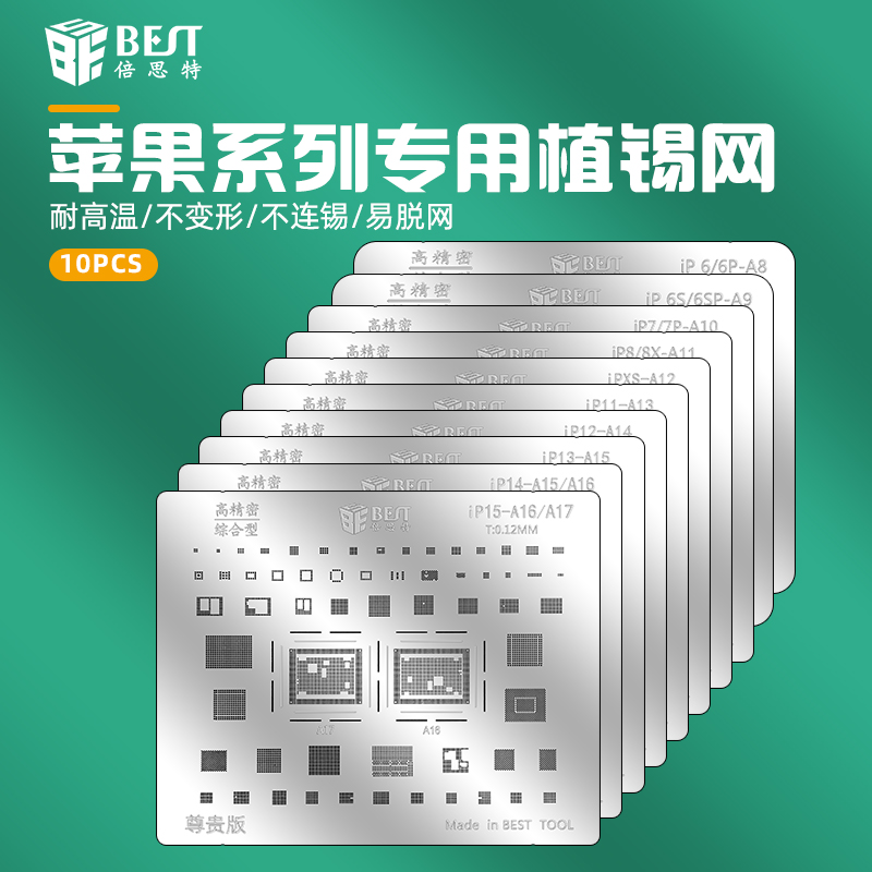 返回當前位置: 首頁 / 產(chǎn)品中心 / BST-IP(A8-A17)蘋果CPU系列專用植錫網(wǎng) 適用于iP6~15植錫鋼網(wǎng) 多用植錫方孔定位鋼網(wǎng) 植錫卡套裝10pcs