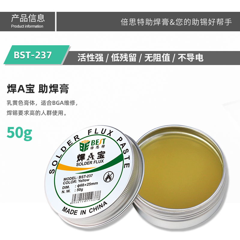 返回當(dāng)前位置: 首頁 / 產(chǎn)品中心 / BST-237 焊A寶 助焊膏50g鋁盒裝 焊油助焊劑松香
