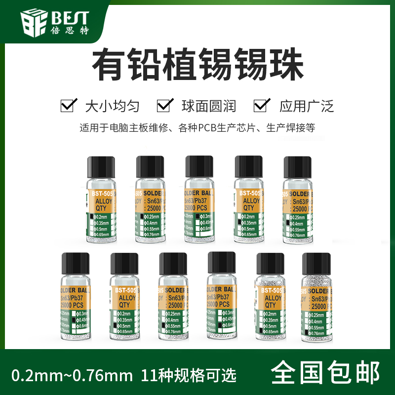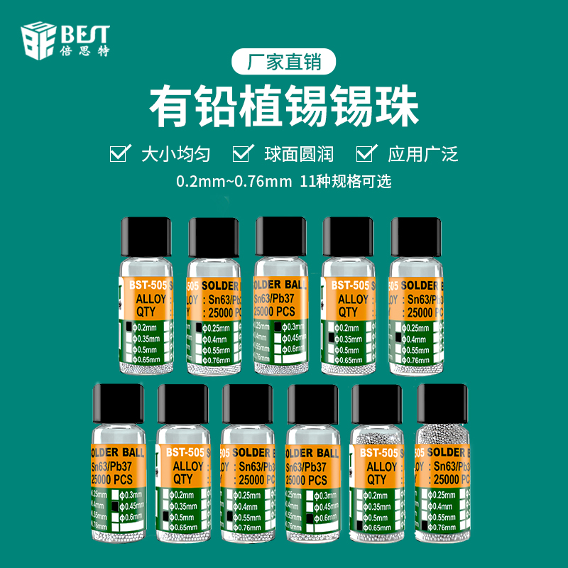 BST-505 錫珠 BGA封裝 植錫球Sn63/Pb37 BGA有鉛錫珠 2.5萬粒裝小瓶含鉛錫球 0.3芯片植錫錫粒焊接