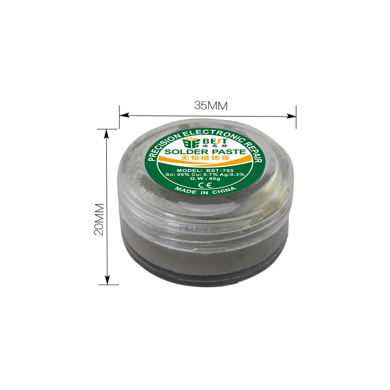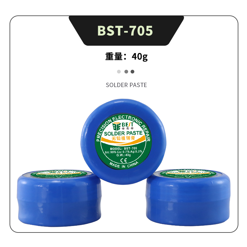 返回當(dāng)前位置: 首頁(yè) / 產(chǎn)品中心 / BST-705 無(wú)鉛錫漿 高溫錫漿 焊錫膏 BGA植錫膏 Sn99/Cu0.7/Ag0.3 40g