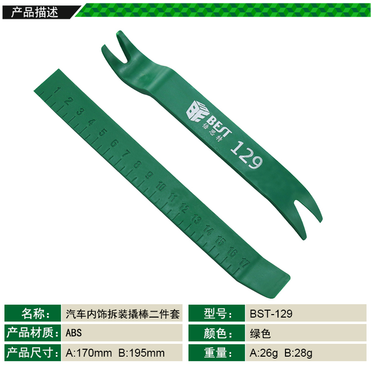返回當(dāng)前位置: 首頁(yè) / 產(chǎn)品中心 / BST-129 汽車內(nèi)飾拆裝工具二件套 塑料大撬棒
