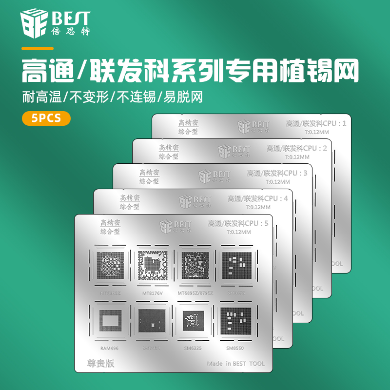 BST-MTK 高通/聯(lián)發(fā)科CPU系列專用植錫網(wǎng) 多用植錫方孔定位鋼網(wǎng) 植錫卡套裝5pcs