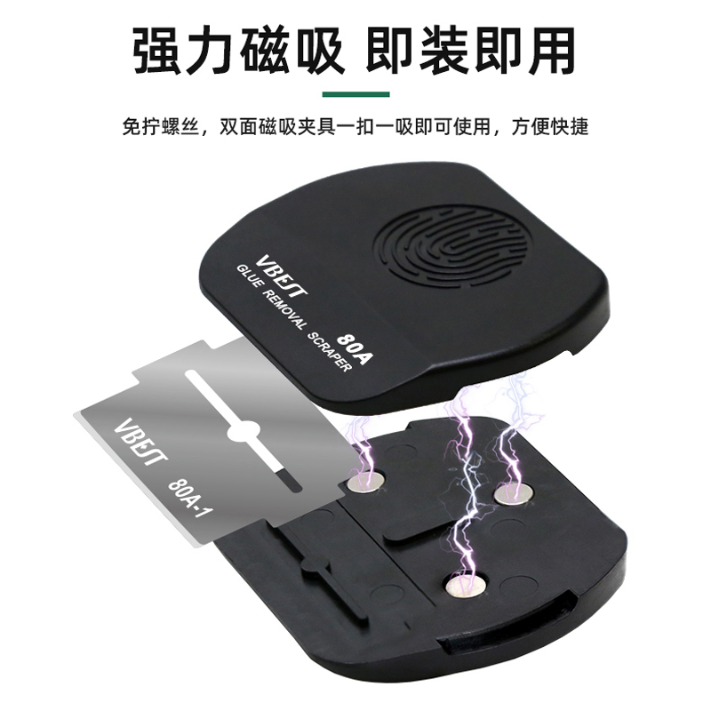VBST-80A 磁吸雙面除膠鏟刀 維修8刀片合一芯片手機屏幕返修套裝 雙面刀片夾具除膠割膠磁性手柄 多用途去膠刀套裝