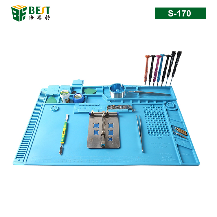 BST-S-170 耐高溫硅膠墊 工作臺墊 帶磁性收納區(qū) 螺絲記憶定位區(qū) 零件收納盒 手機(jī)主板卡槽 隔熱墊
