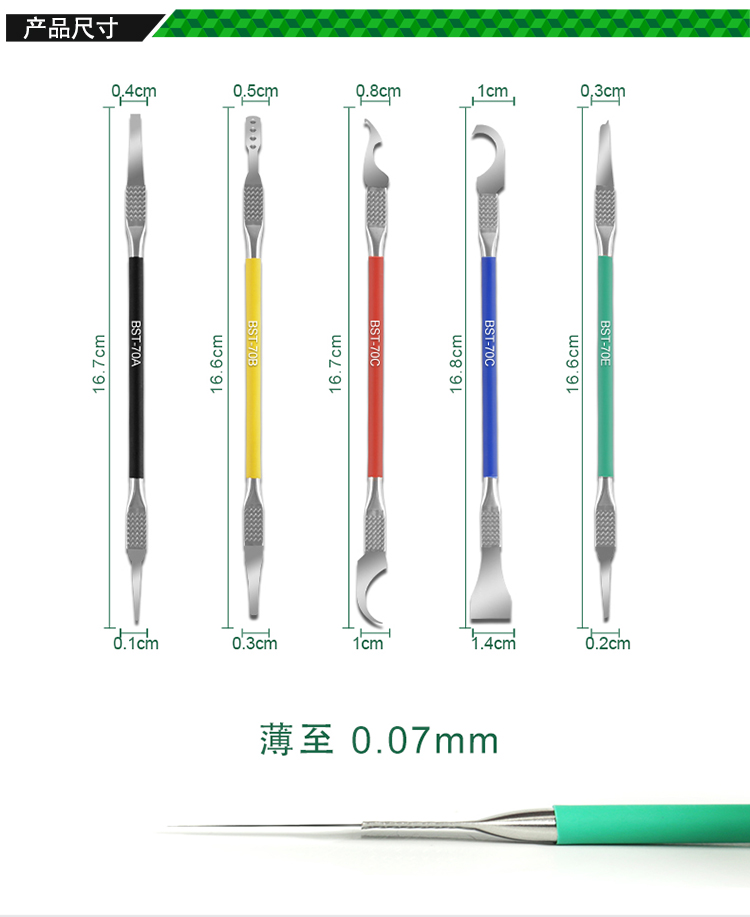 返回當(dāng)前位置: 首頁(yè) / 產(chǎn)品中心 / BST-70 CPU除膠撬棒 除膠 刮錫 芯片返修撬刀刻刀5pcs