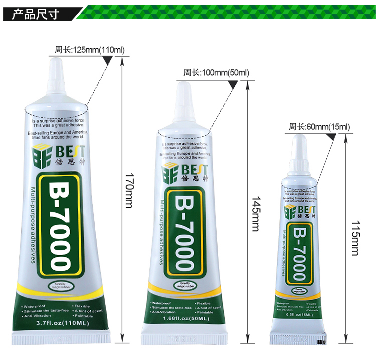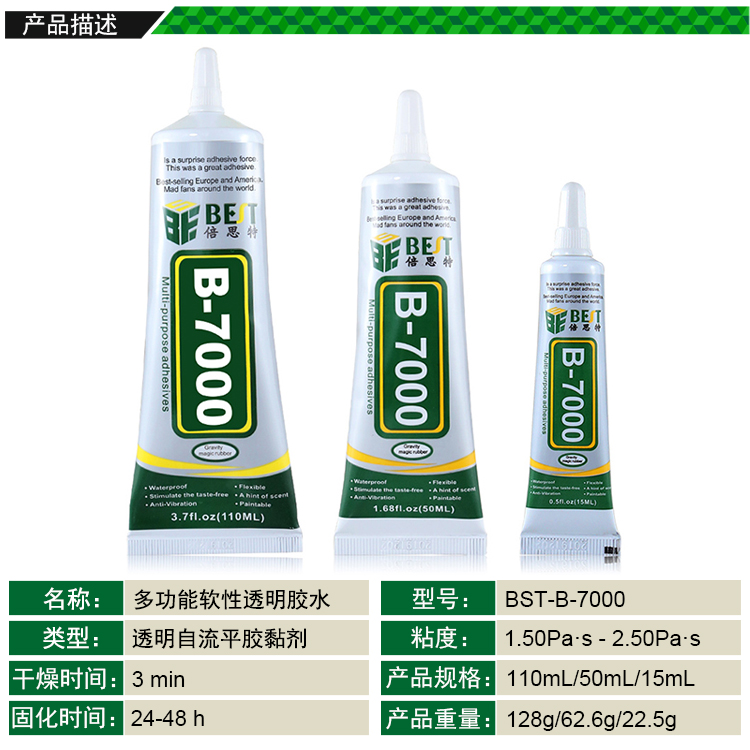 BST-B-7000 多功能軟性透明膠水 手機屏幕修復(fù)膠水 維修專用邊框密封膠(15ML/50ML/110ML)