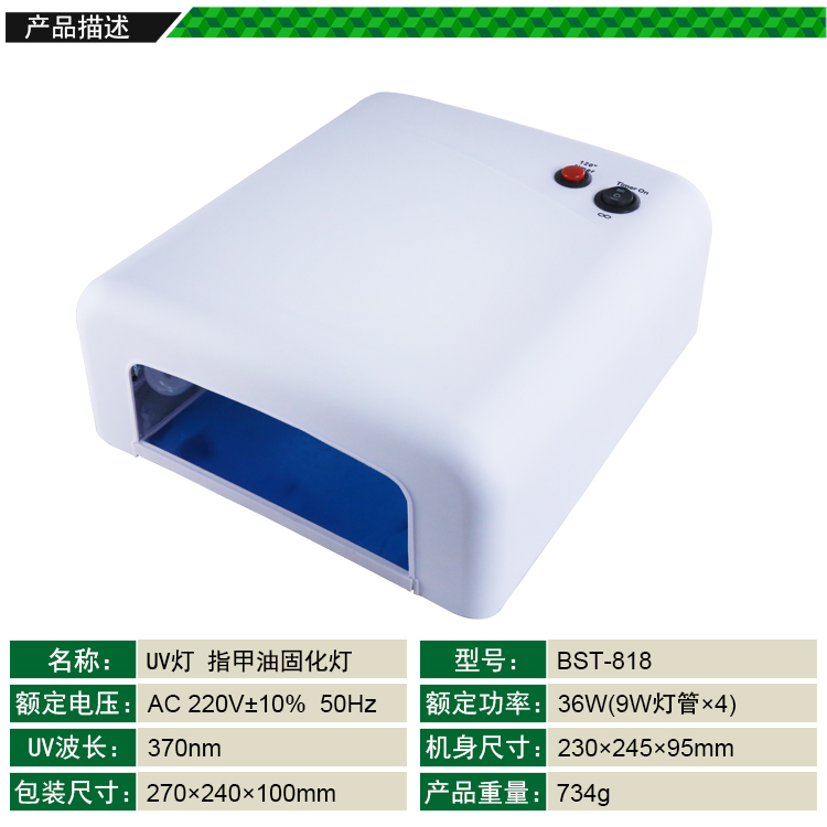 返回當前位置: 首頁 / 產(chǎn)品中心 / BST-818 UV燈 無影膠指甲油固化燈 紫外線燈