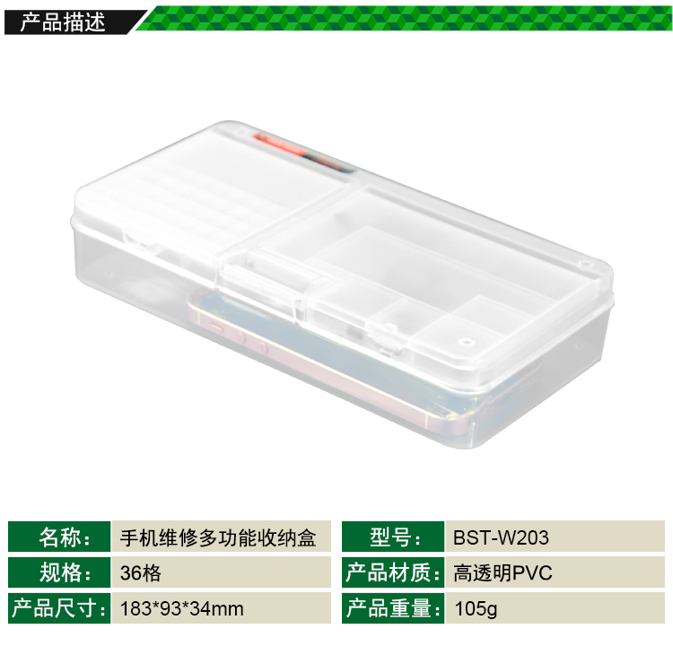 返回當(dāng)前位置: 首頁 / 產(chǎn)品中心 / BST-W203 雙層透明塑料元件盒 手機(jī)維修多功能收納盒