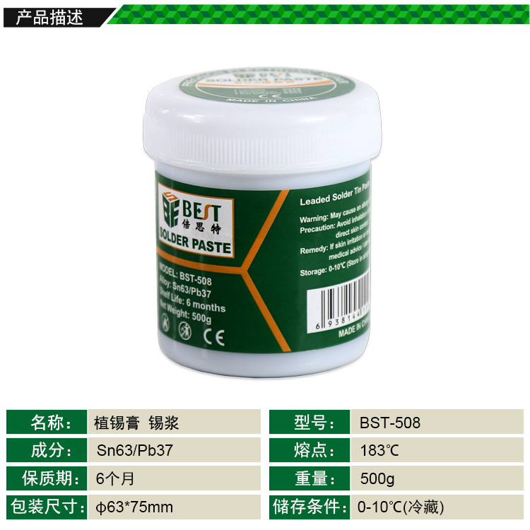 BST-508 錫漿 中溫含鉛錫膏 BGA植錫膏 Sn63/Pb37 500g