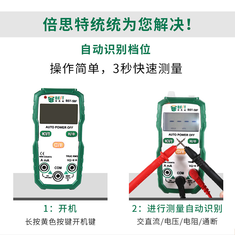 返回當(dāng)前位置: 首頁(yè) / 產(chǎn)品中心 / BST-58F 全自動(dòng)量程萬(wàn)用表 無(wú)需撥檔智能識(shí)別數(shù)字萬(wàn)用表 家用迷你電工儀表