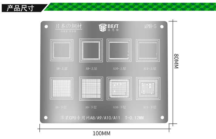 產(chǎn)品名稱: A8/A9/A10/A11手機(jī)CPU專用植錫網(wǎng)
