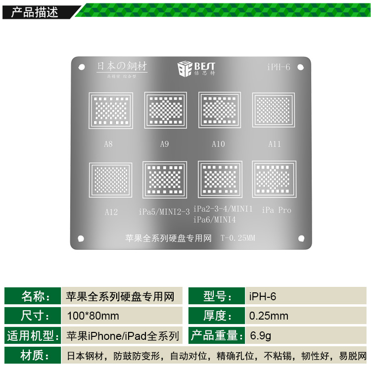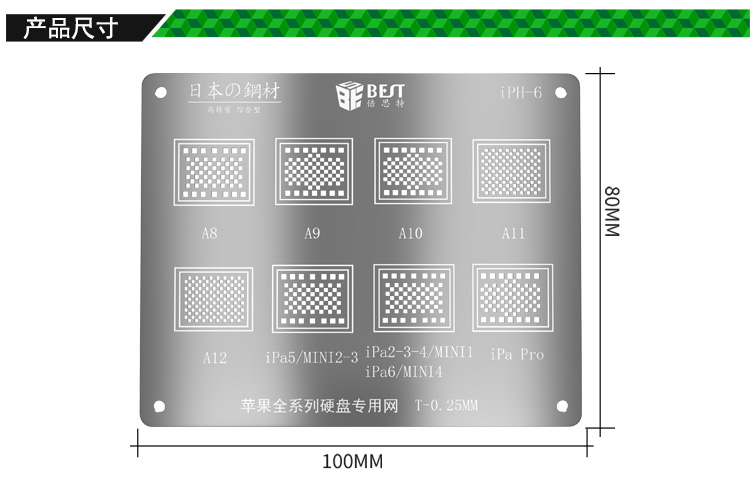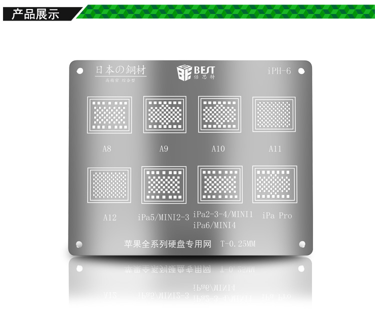 返回當(dāng)前位置: 首頁 / 產(chǎn)品中心 / iPH-6 iP全系列CPU硬盤專用植錫網(wǎng) 多用植錫方孔定位鋼網(wǎng) 植錫卡