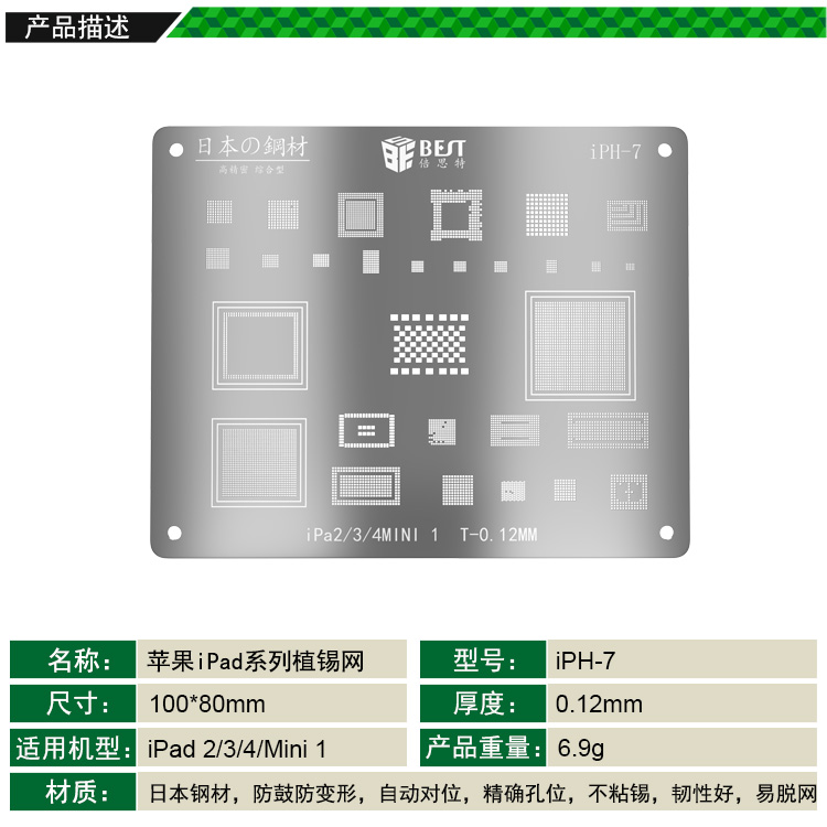 產(chǎn)品名稱: iPad 2/3/4/Mini 1專用植錫網(wǎng)