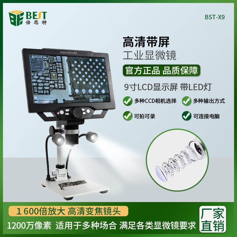 BST-X9 1200萬像素高清帶屏工業(yè)顯微鏡 1600倍放大 多種CCD相機選擇及輸出方式 數(shù)碼顯微鏡