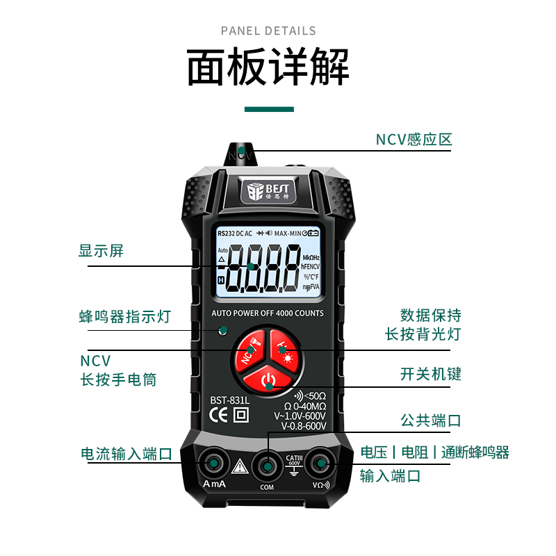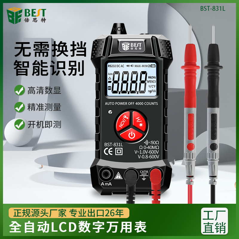 返回當(dāng)前位置: 首頁 / 產(chǎn)品中心 / BST-831L 全自動(dòng)萬用表無需換擋識(shí)別數(shù)字傻瓜式萬能表 小型便攜式高精度智能萬用表 家用迷你電工儀表