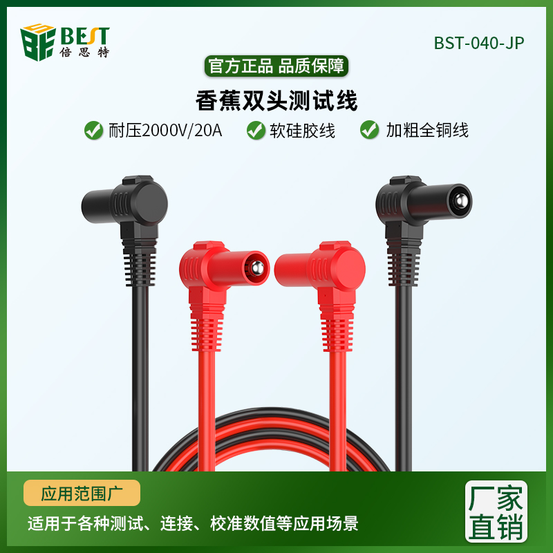 返回當前位置: 首頁 / 產(chǎn)品中心 / BST-040-JP 香蕉雙頭測試線 雙插測試線4mm安全型測試導(dǎo)線 紅黑雙頭90度插線 香蕉插疊插連接線 雙向蓮花頭導(dǎo)線 2000V20A大電流