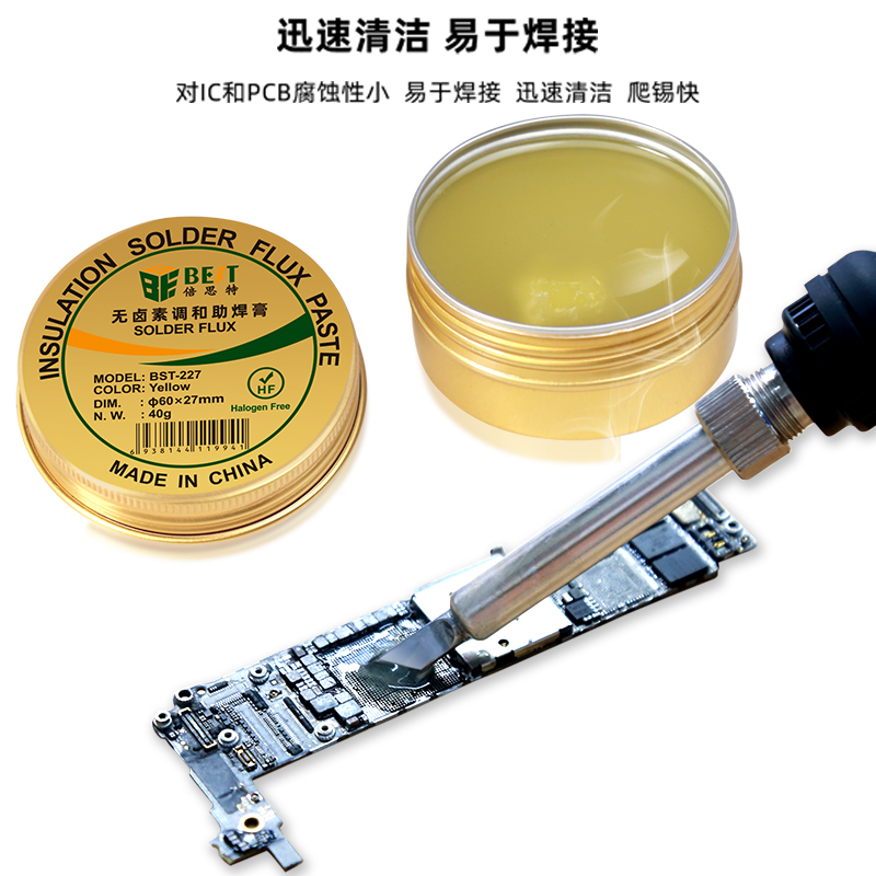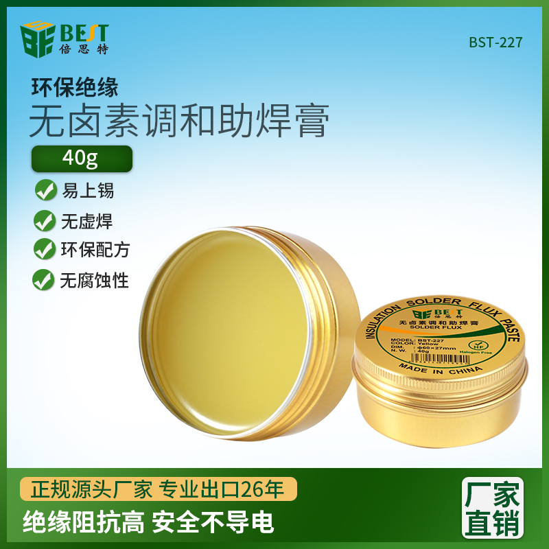 返回當(dāng)前位置: 首頁(yè) / 產(chǎn)品中心 / BST-227 無(wú)鹵素調(diào)和助焊膏40g 環(huán)保高合成無(wú)鹵素免洗助焊膏 松香助焊劑SMT電子制作鋁盒調(diào)和助焊油